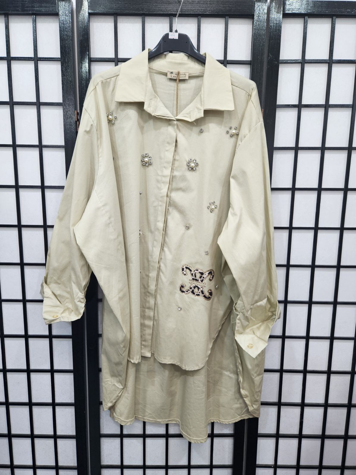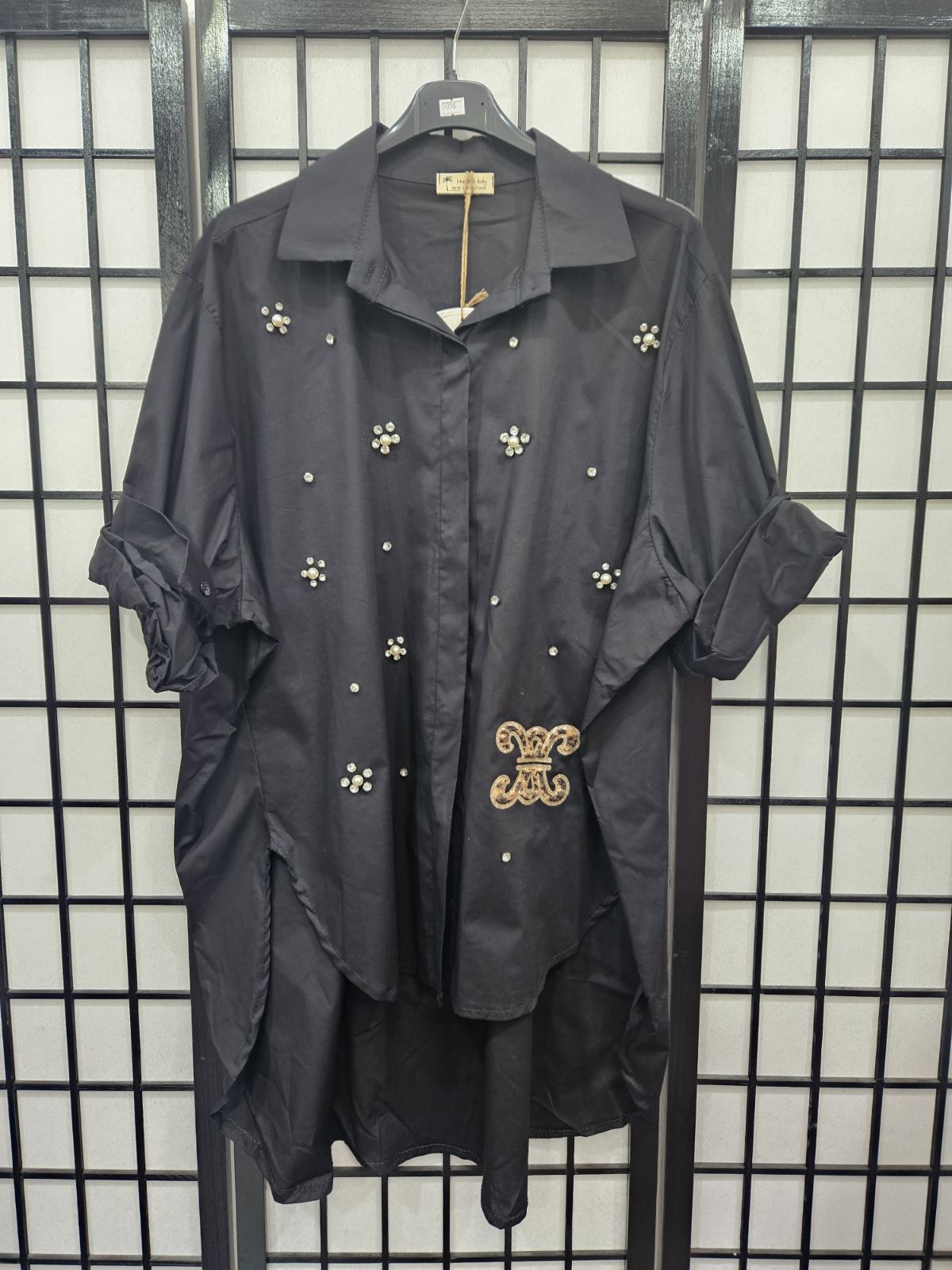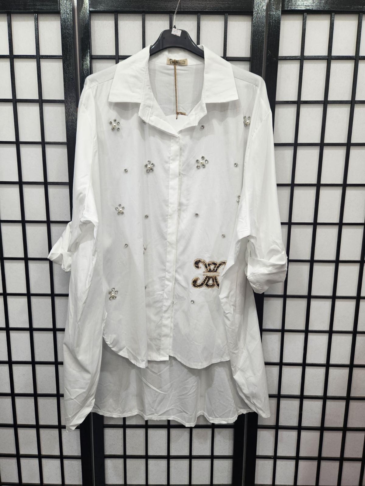 Italian High Low Diamante Detail Shirt- 5056