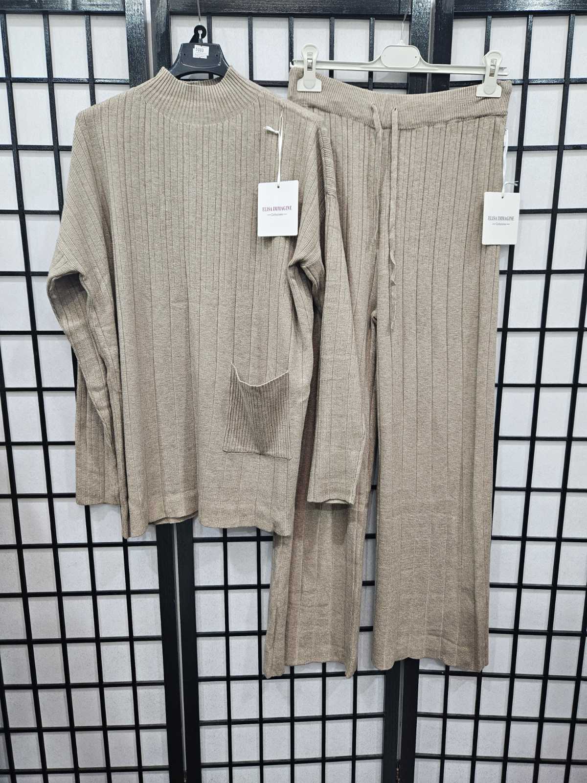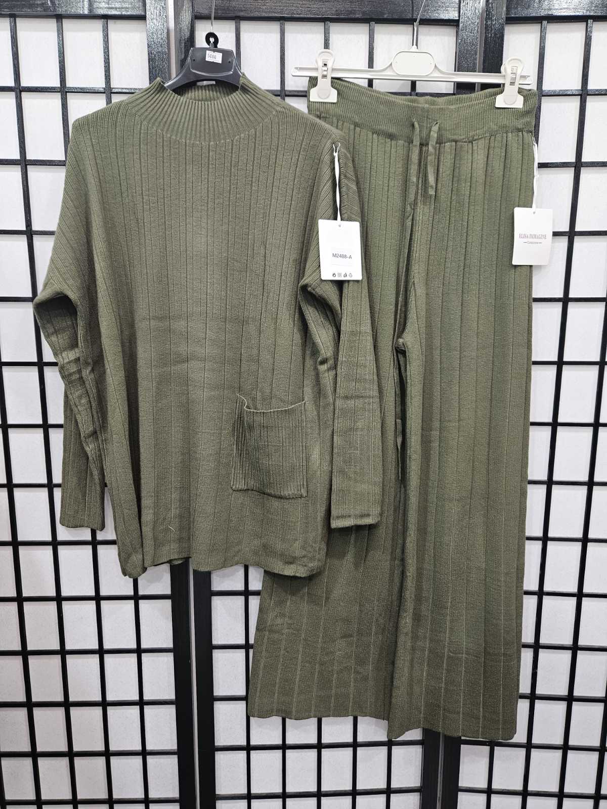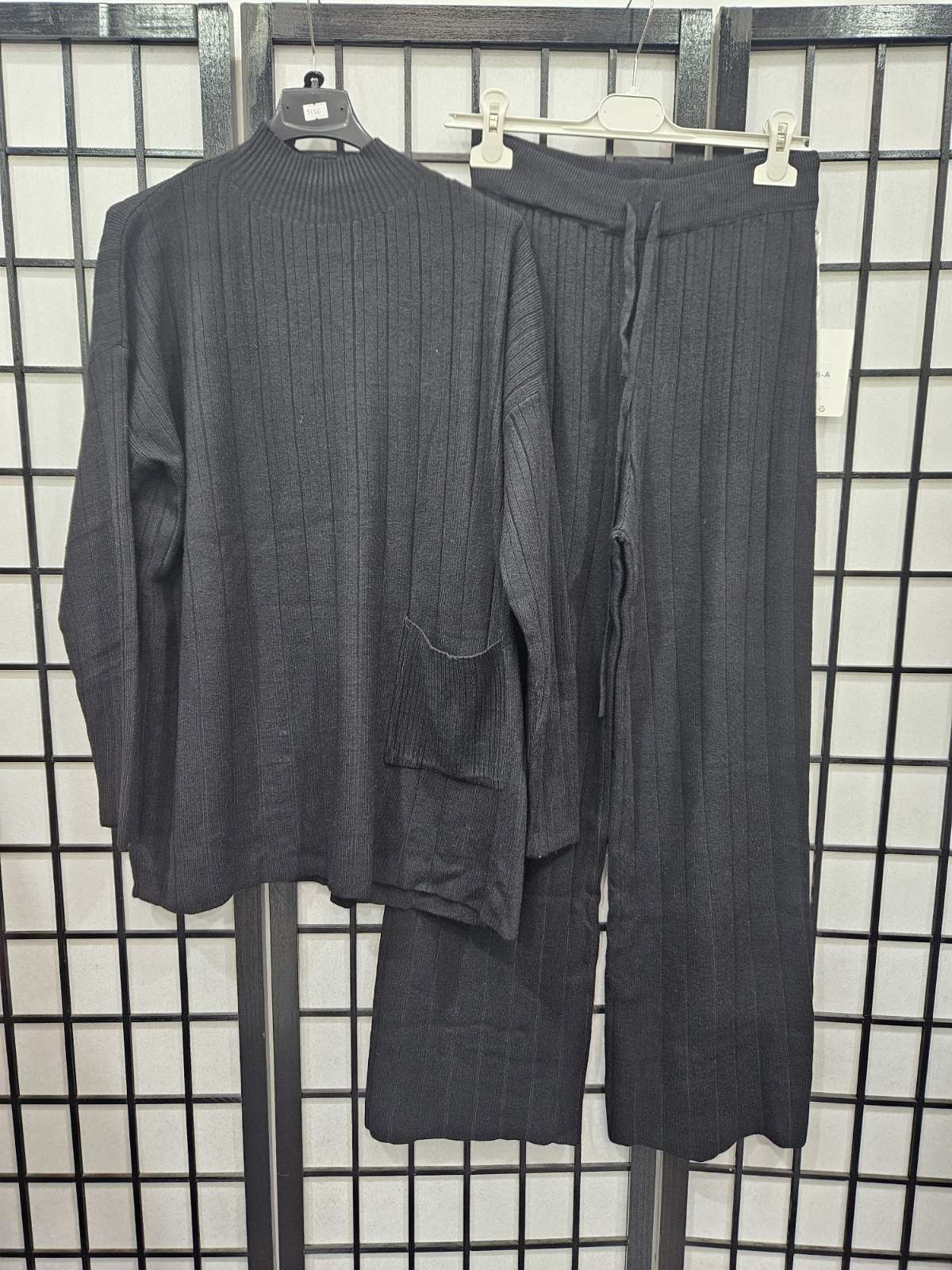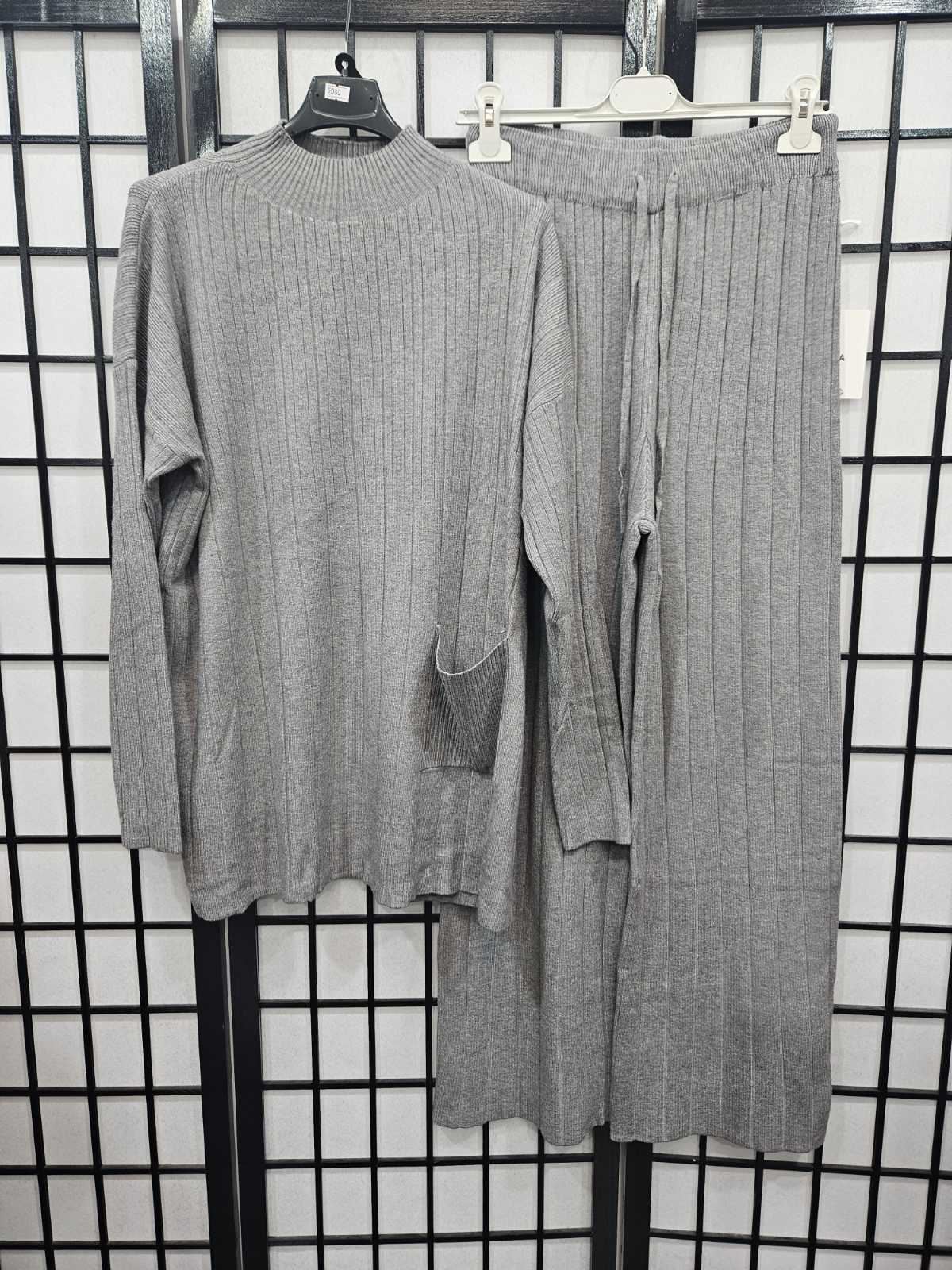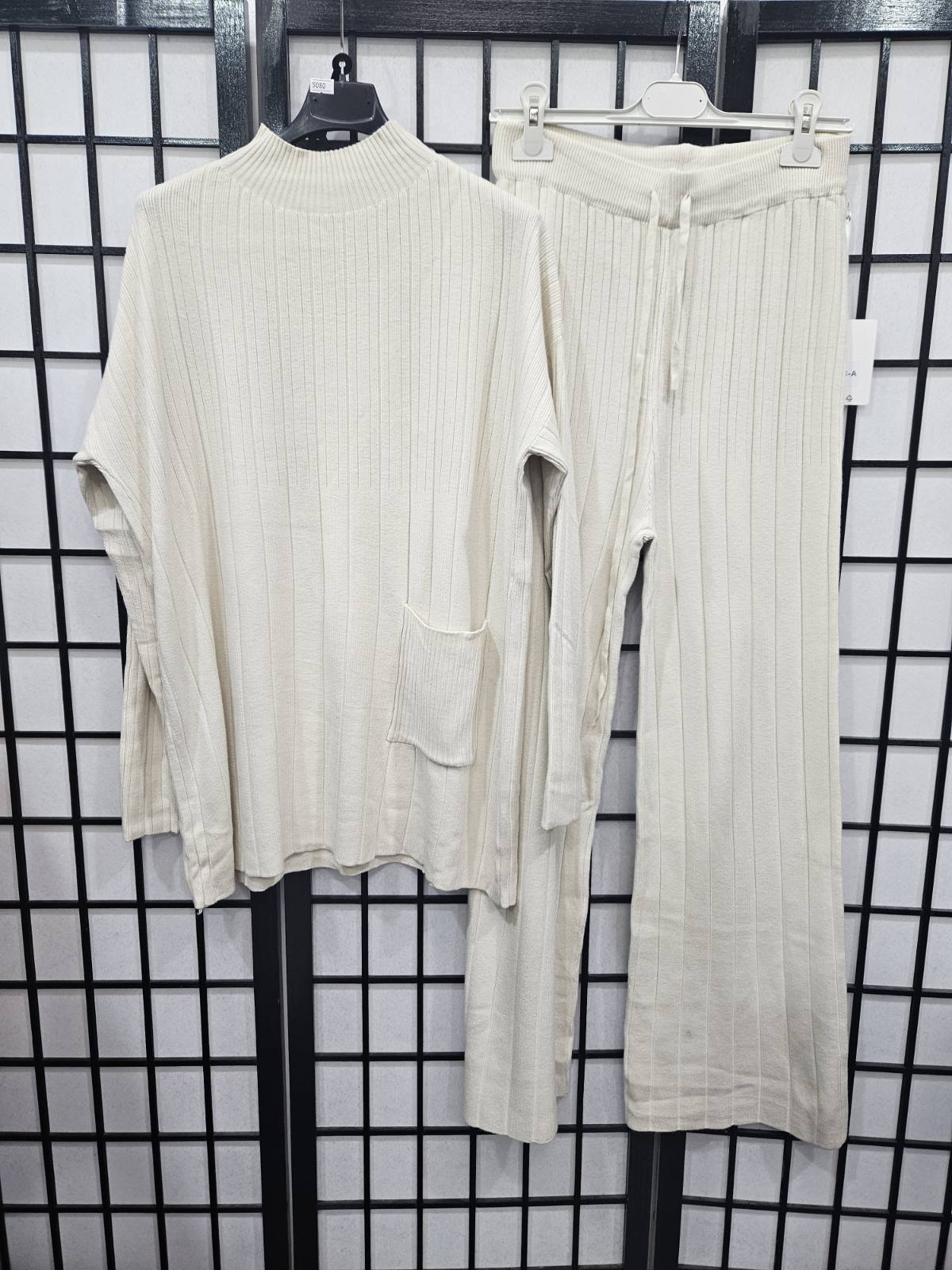 High Neck Knitted Rib Jumper With Ribbed Trousers- 5080