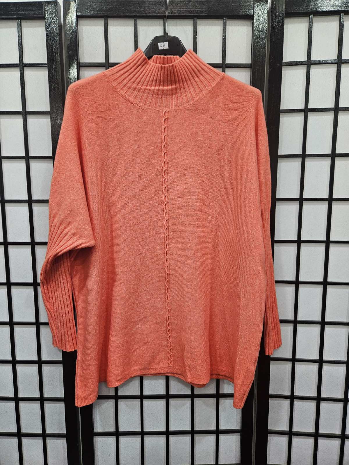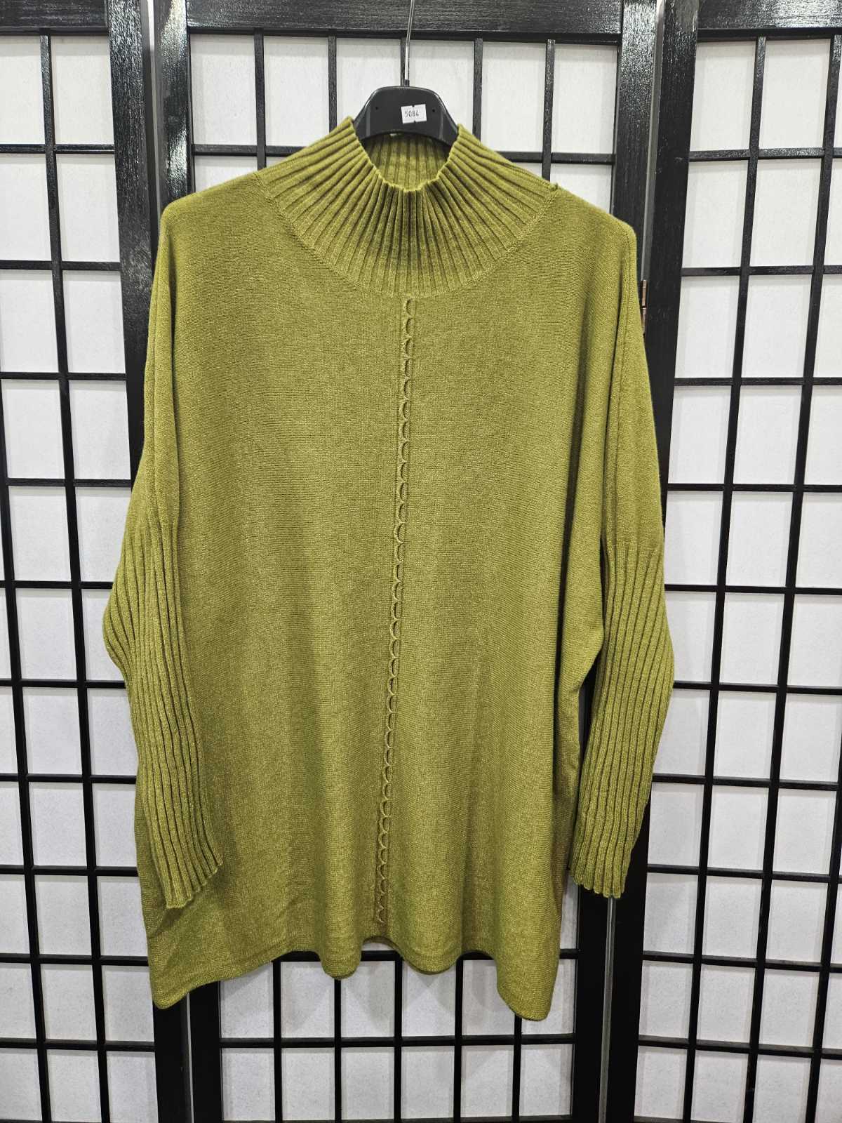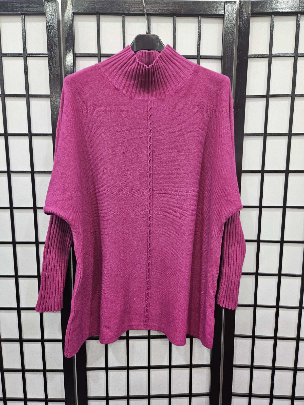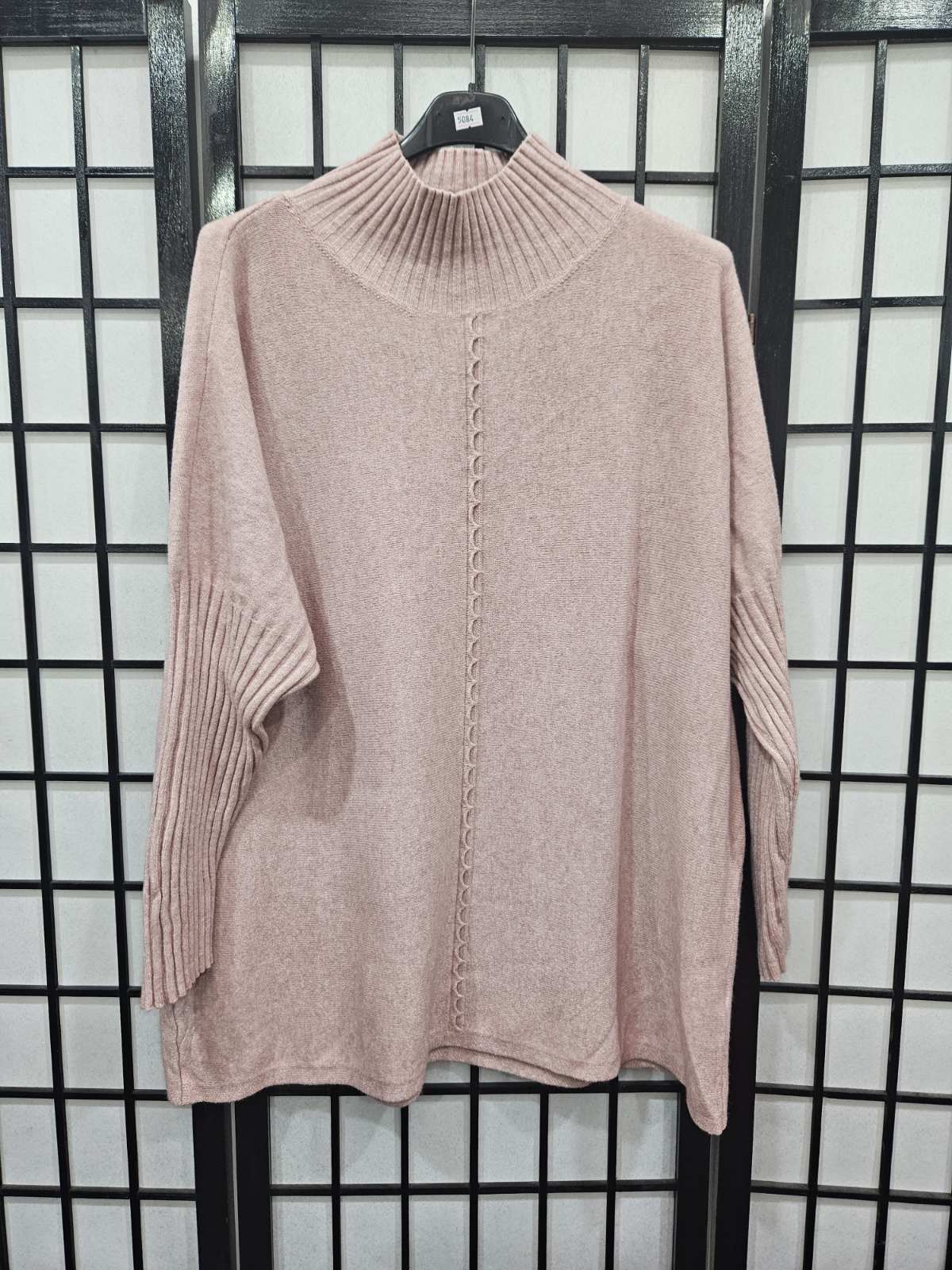 High Neck Ribbed Sleeve Jumper With Detail Down The Front- 5084