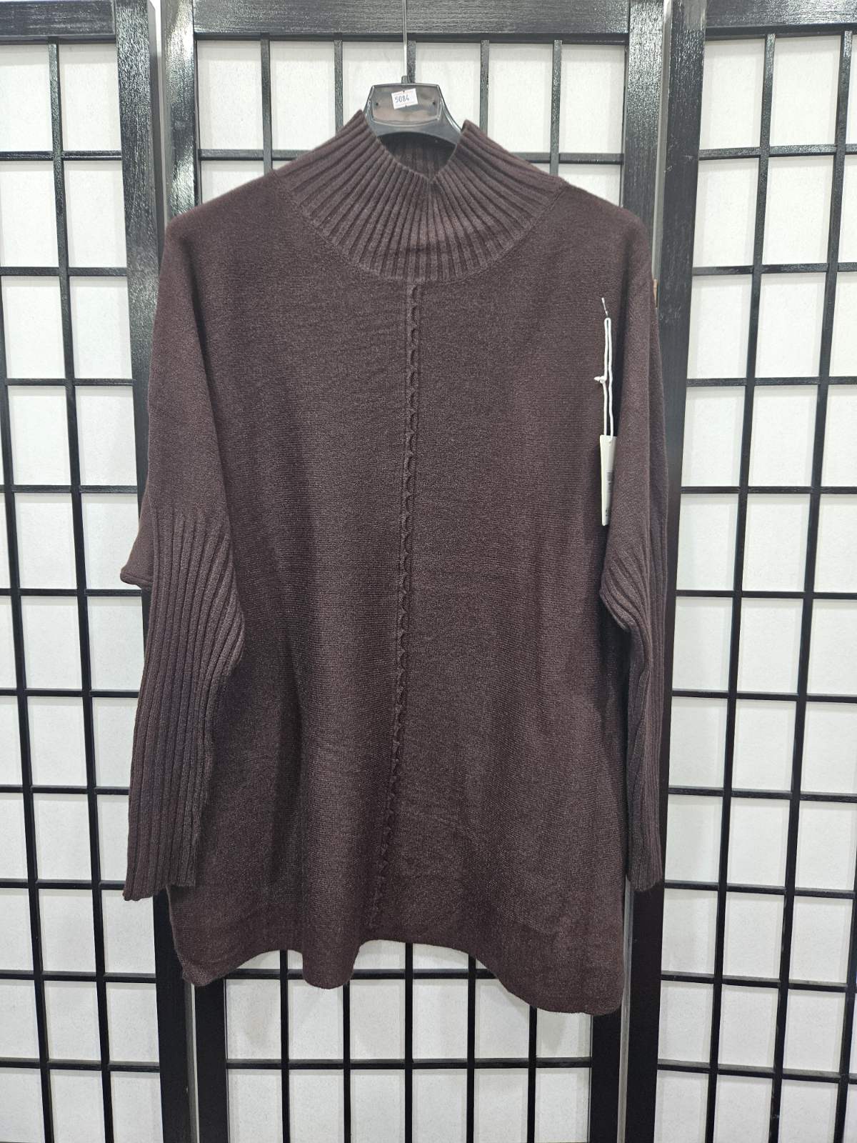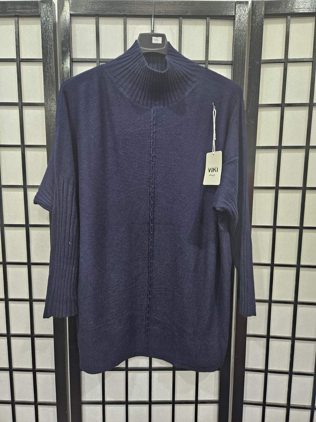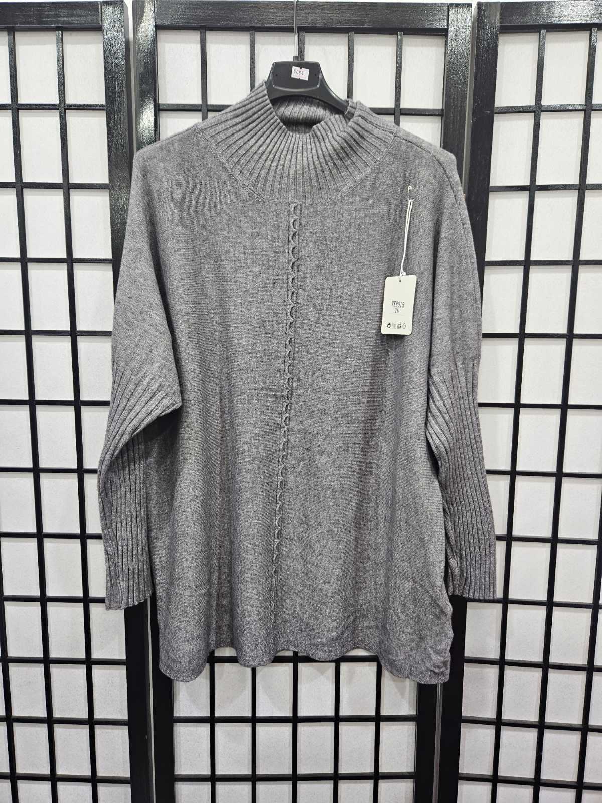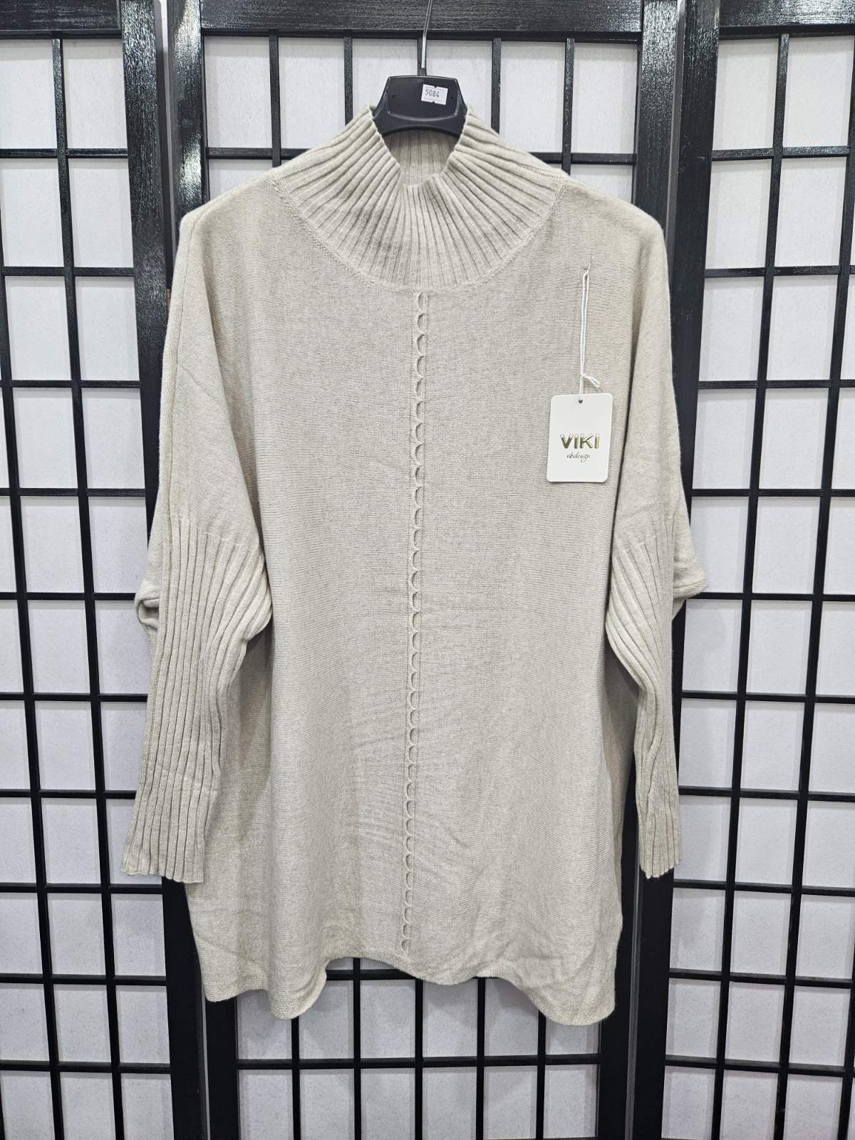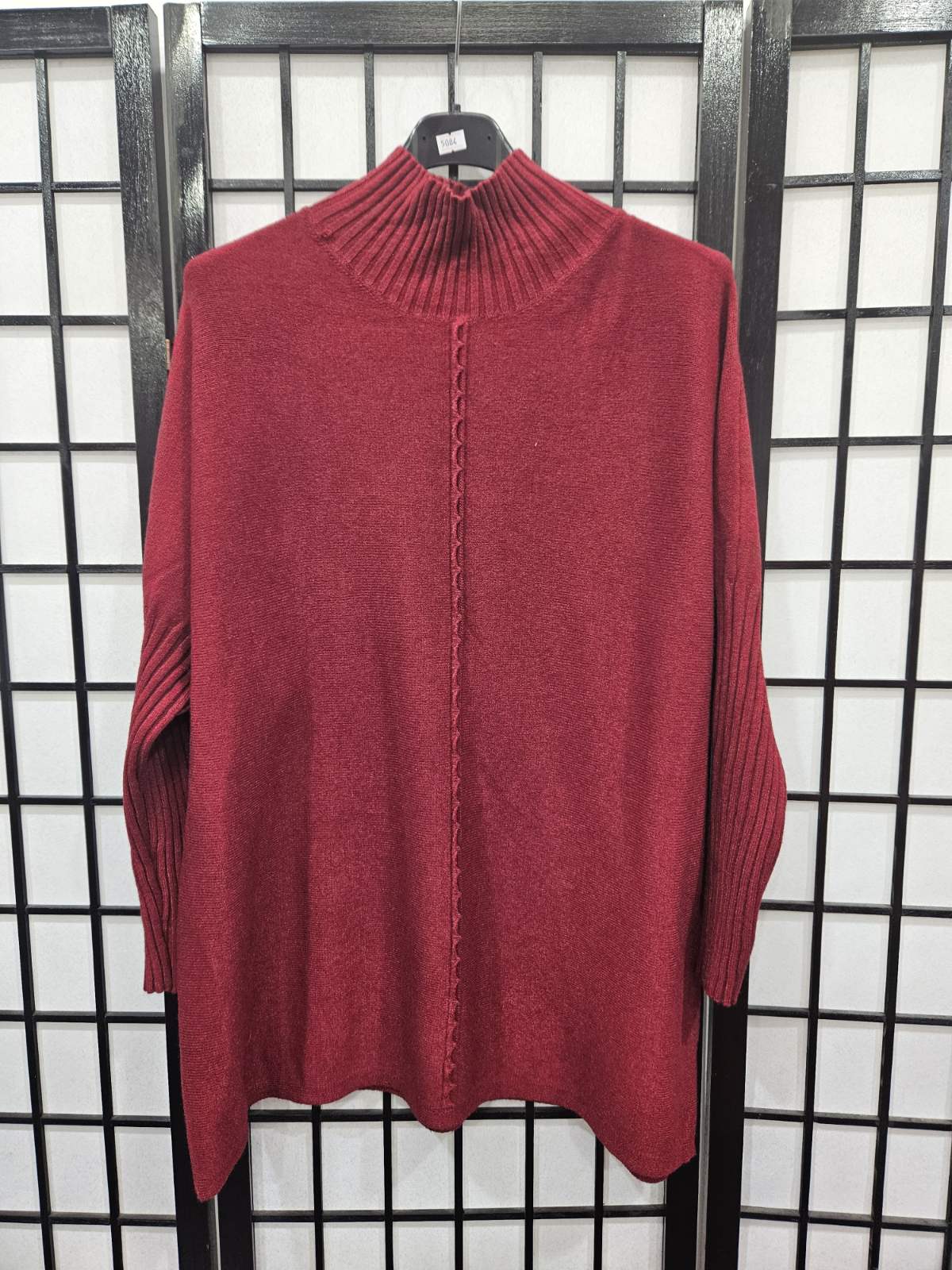 High Neck Ribbed Sleeve Jumper With Detail Down The Front- 5084