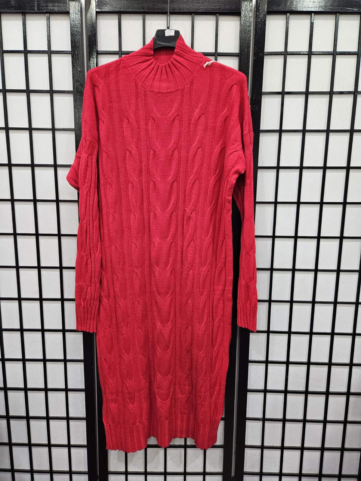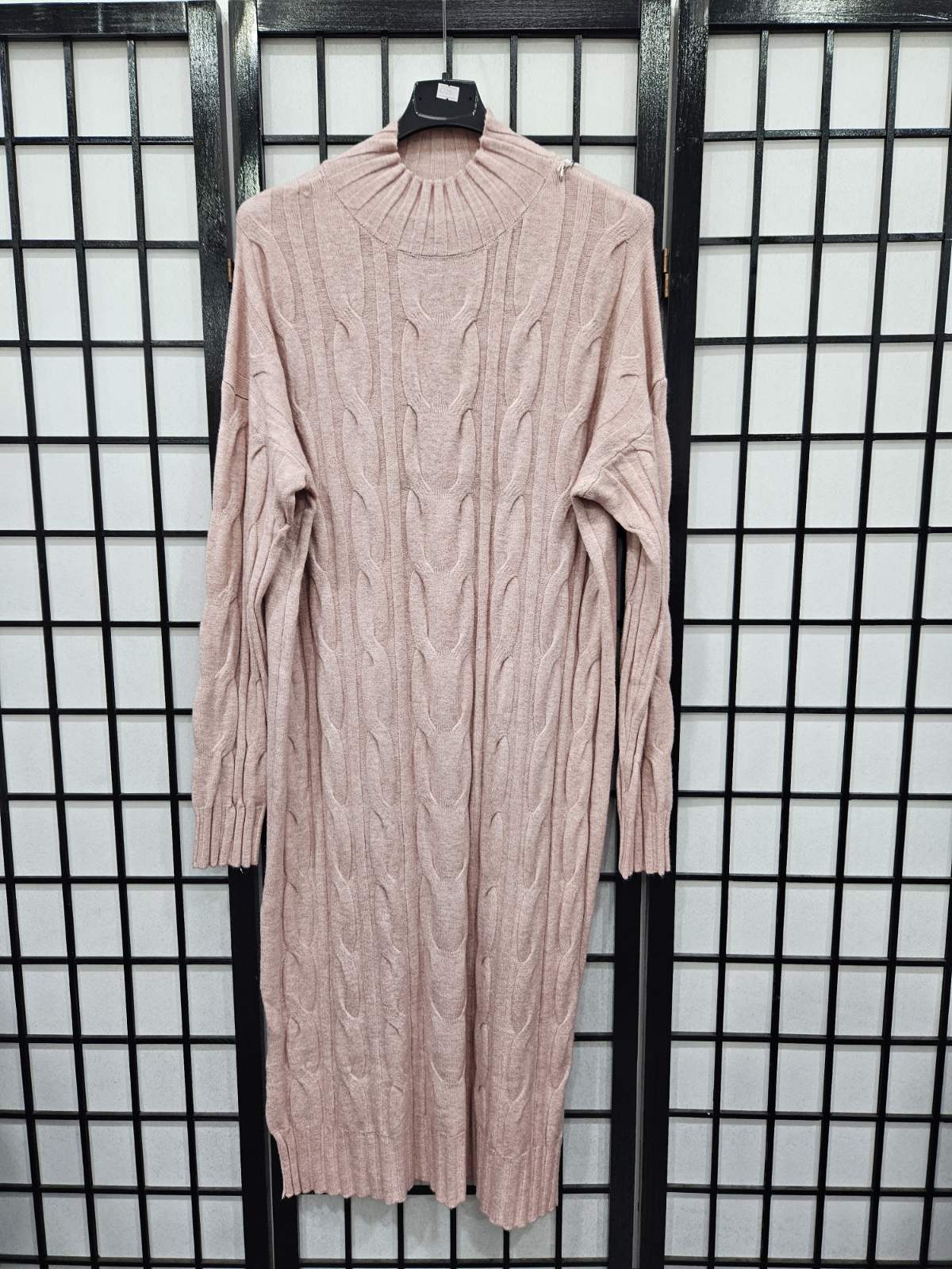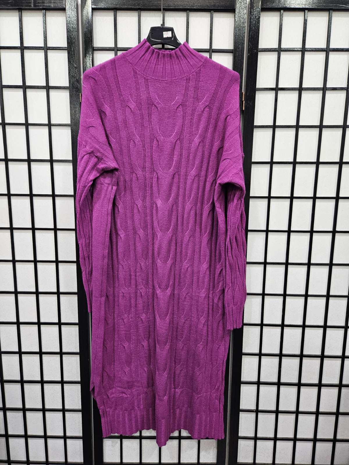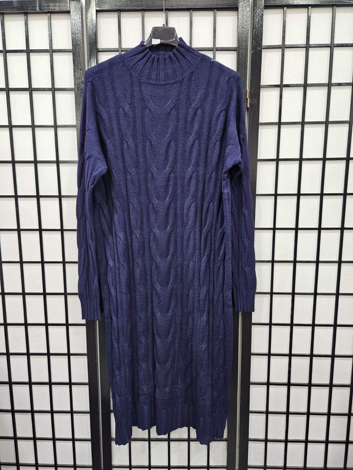 Italian Cable Knit Front Plain Back Turtle Neck Jumper Dress - 4725