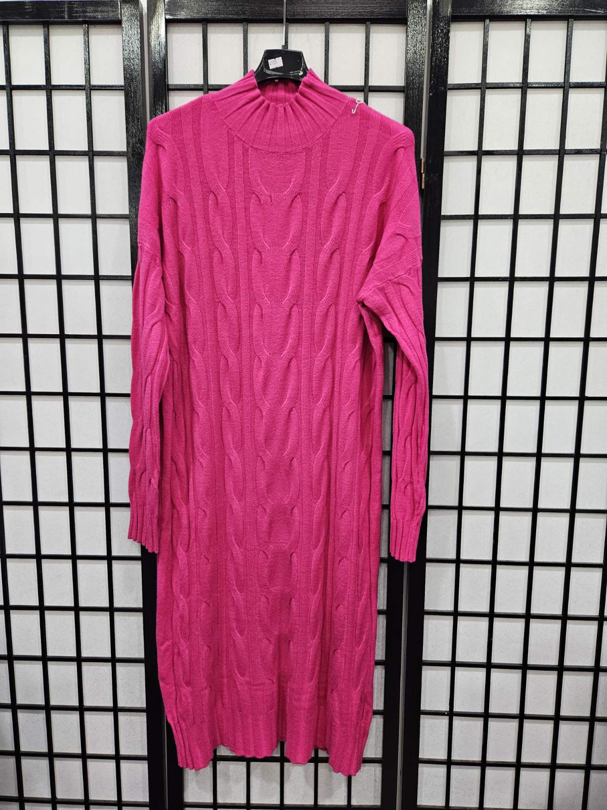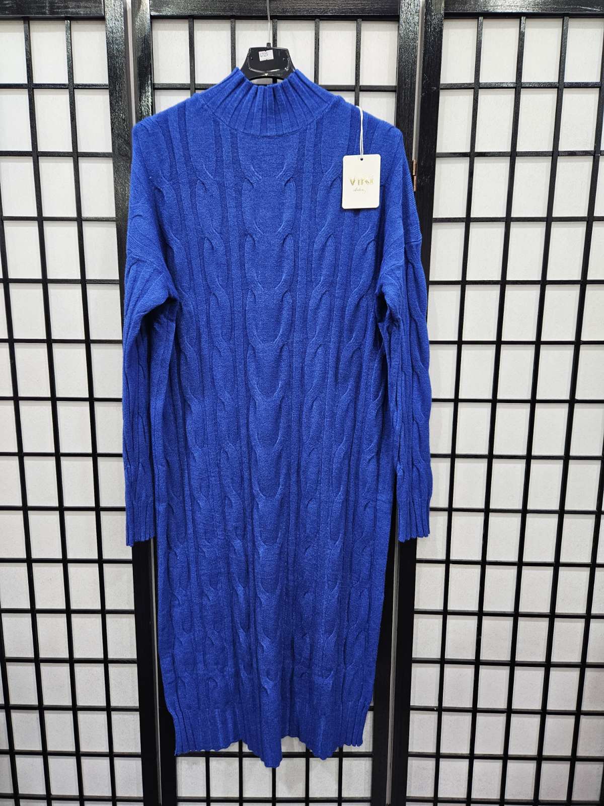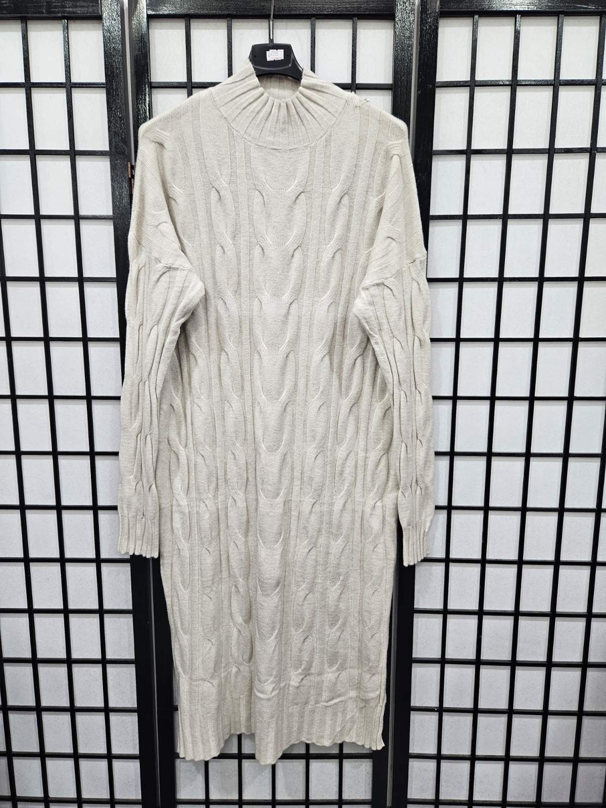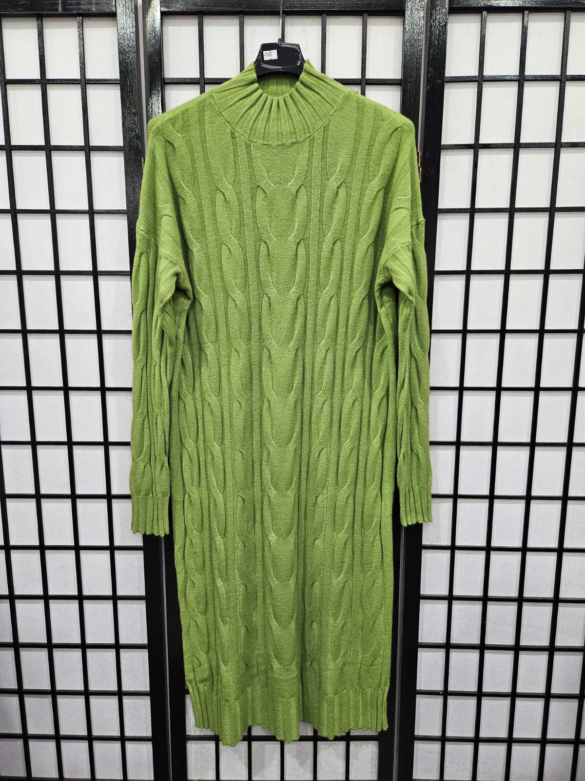 Italian Cable Knit Front Plain Back Turtle Neck Jumper Dress - 4725
