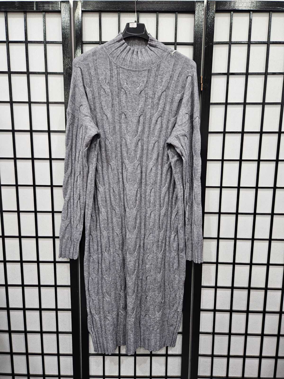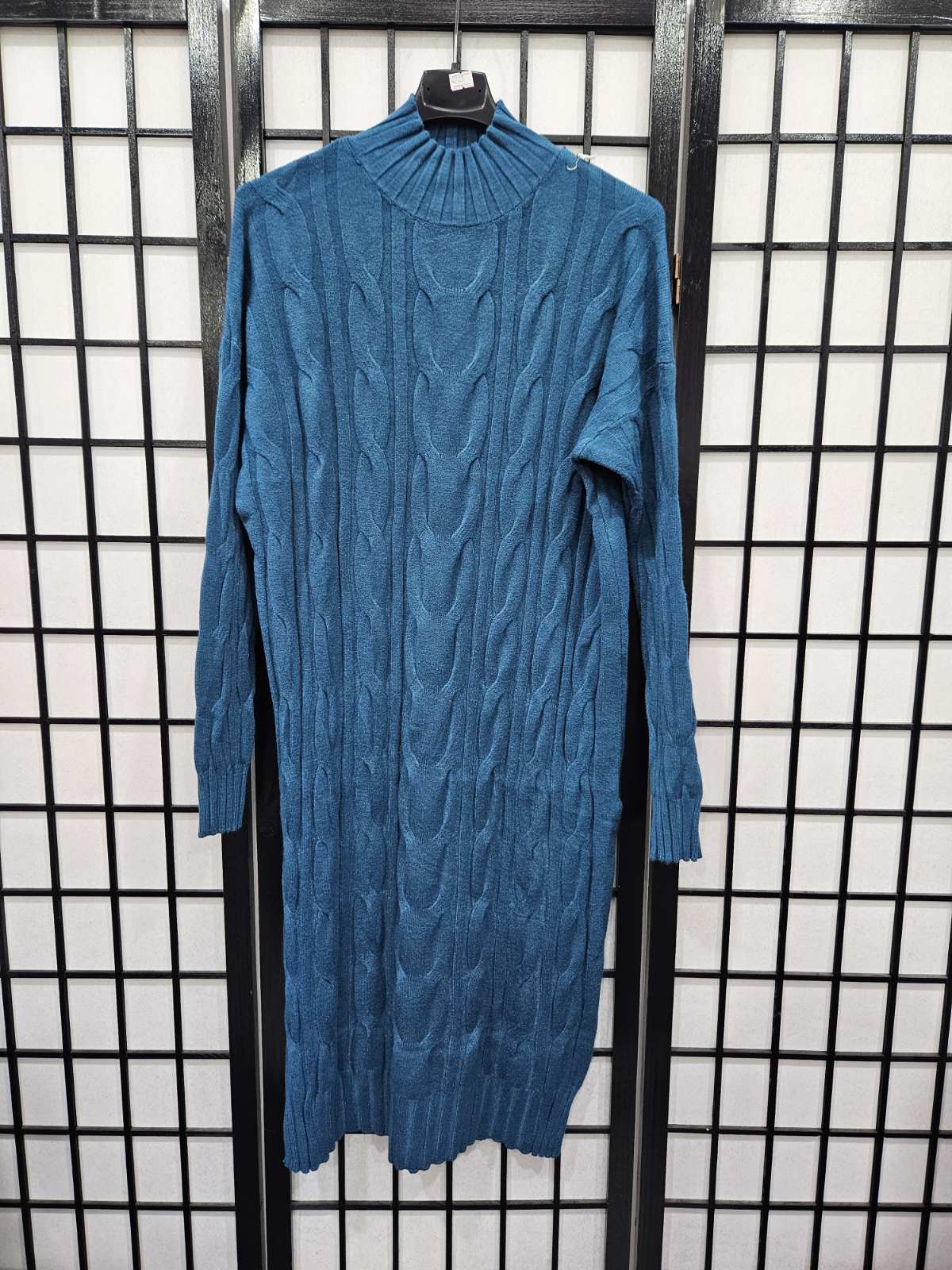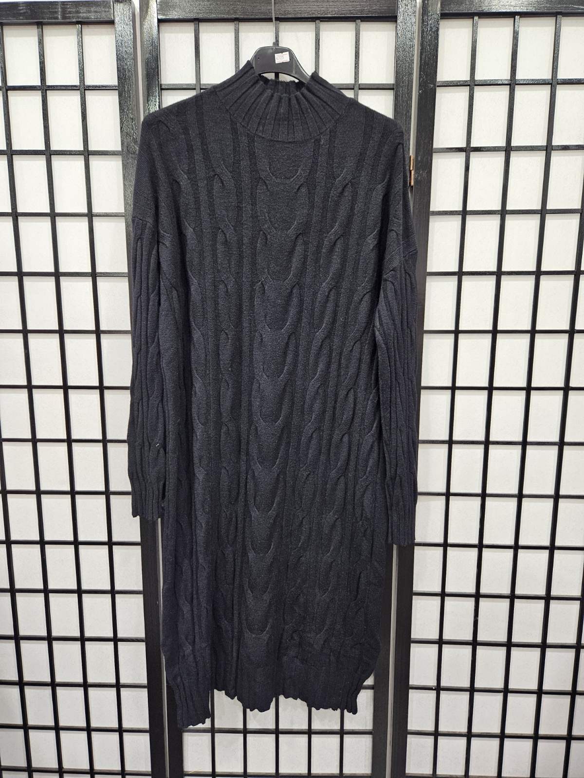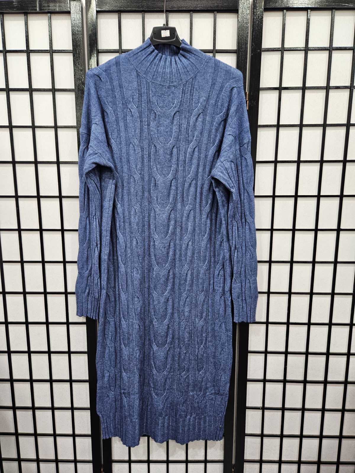 Italian Cable Knit Front Plain Back Turtle Neck Jumper Dress - 4725