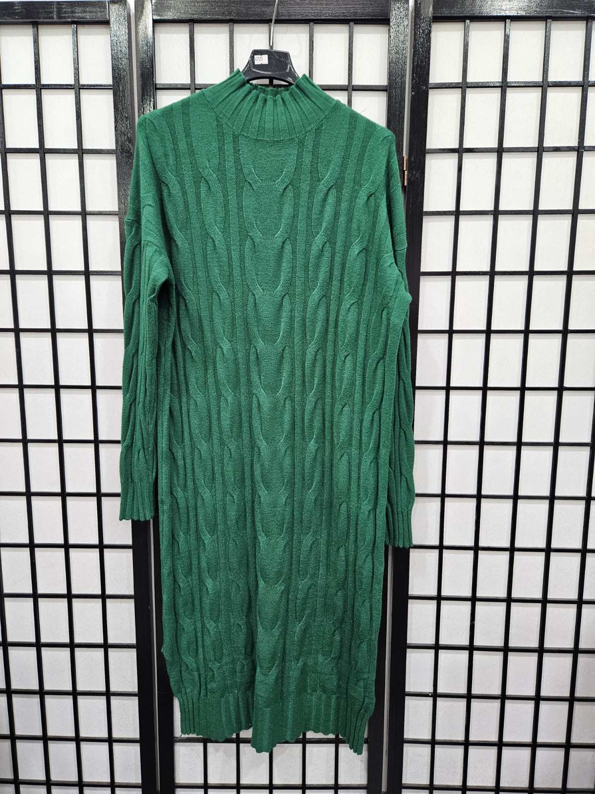 Italian Cable Knit Front Plain Back Turtle Neck Jumper Dress-4725